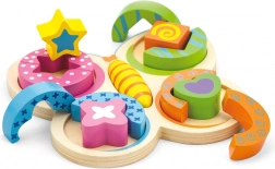 A rendszeres kirakás erősíti a koncentrációt, a logikus gondolkodást és fejleszti a képzeletet. Az élénk színek és az áttekinthető motívum természetes, szórakoztató formában segítik a színek és formák elsajátítását.