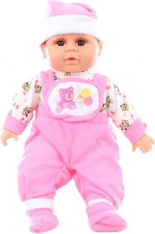 A bájos, hangot adó baba puha testtel örömet szerez minden kis gondoskodónak. A test megnyomására élethű hangokat ad ki – nevetés, sírás, „anya” és „apa”. Rózsaszín pizsamát visel, amely tépőzárral könnyen levehető és feladható. Ideális a gondoskodó szerepjáték és a finommotorika fejlesztéséhez.