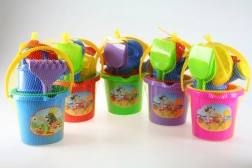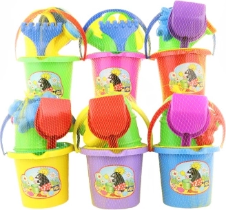 Homokozó játékkészlet 3 éves kortól, amely mindent tartalmaz a szórakozáshoz a strandon és a homokozóban: vödör, szita, kis lapát, gereblye, locsolókanna és forma. A praktikus összeállításnak és a könnyű műanyag kivitelnek köszönhetően ideális a kis építőknek. Teljes homokozó felszerelés, könnyű és biztonságos kivitel, valamint a tündéri kép a vödörön örömet szerez minden kis építőnek.