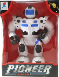 Az elemes robot sétál, világít és hangokat ad ki, a karjait és a fejét mozgatja. Tápellátás: 4× AA elem (nem része a csomagnak). A robot mérete kb. 23 × 17 cm. Ajánlott életkor: 3+