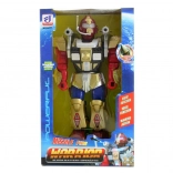 Ez a műanyag, elemmel működő robot ideális játék 3 éves kortól. Fény- és hangeffektek ragadják magukkal a gyermeket, és beindítják a képzeletét. A robot tud járni, interaktív mozgásai közé tartozik a forgás, valamint a karddal és pajzzsal végzett mozdulatok.
