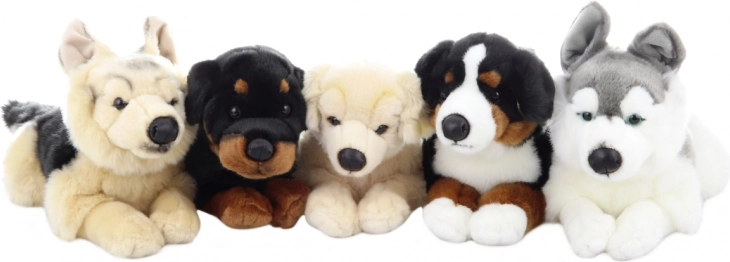 Puha, 43 cm-es plüss kutya újrahasznosított PET palackokból készült töltettel. Környezetbarát, 0+ kortól biztonságos. Tökéletes ölelő társ gyerekeknek és felnőtteknek.