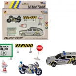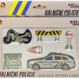 Realista, magyar dizájnú autópályarendőrségi készlet a City Collection sorozatból, amely minden kis rend őrét felvidítja. Tartalmaz egy fém rendőrautót fény- és hangjelzővel, egy műanyag motorkerékpárt és közlekedési táblákat. A visszahúzós meghajtásnak köszönhetően az akció az úton azonnal beindul. Ideális 3 éves kortól.