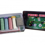 Teljes nagy pókerkészlet tartós fémdobozban otthoni versenyekhez és baráti szórakozáshoz. Minden szükséges elemet tartalmaz: játékkártyák, zsetonok, asztalterítő és használati útmutató. A kompakt csomagolás könnyen hordozható, és ideális ajándék a póker szerelmeseinek.