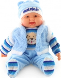 Nagy baba – kisfiú – puha testtel, mérete kb. 53 x 30 x 13 cm. A ruházat levehető. Zacskóban csomagolva. 3+ éves kortól.