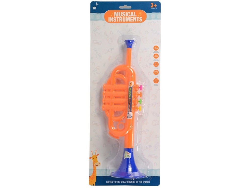 Egyszerű, 35 cm hosszú gyermektrombita, amely örömet szerez a kis zenészeknek. Tartós műanyag kivitel, könnyű kezelhetőség és egyetlen hanggal működő hangeffekt – ideális első zenei próbálkozásokhoz 3 éves kortól.