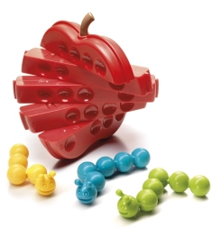 A Smart Games Éhes hernyók játék próbára teszi a képzelőerődet és a türelmedet. A feladatod az, hogy az alma részeit elfordítva és a három hernyót meghajlítva mindet elhelyezd a játéktáblán pontosan a megadott feladvány szerint. Minden rejtvénynek csak egyetlen helyes megoldása van, így biztos lehetsz a fair kihívásban.