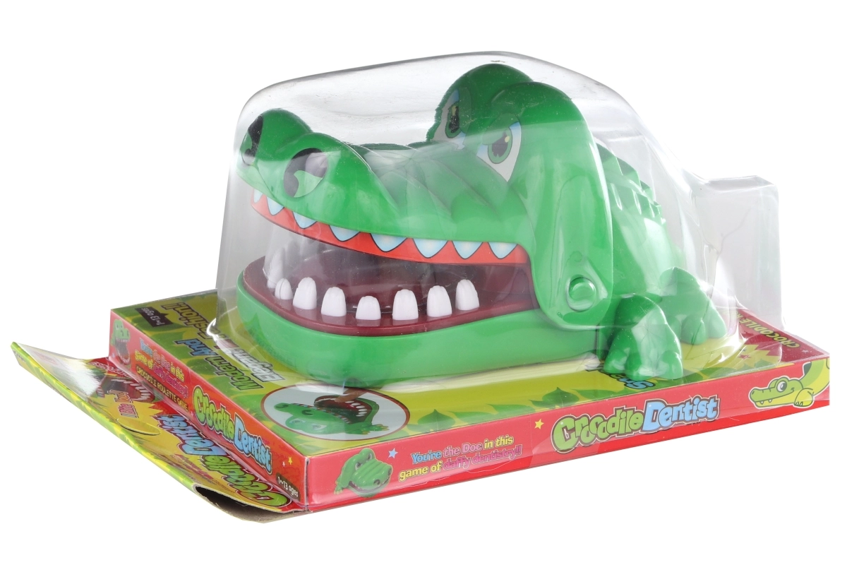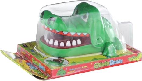 Rengeteg móka kicsiknek és nagyoknak egyaránt. A krokodil kinyitja a száját, a játékosok pedig felváltva nyomogatják a fogakat – sosem tudni, melyik váltja ki a csukódást. Aki a krokodiltól nem kap harapást, az nyer. Ideális családi játékhoz, bulikra és rövid szünetekre.