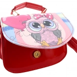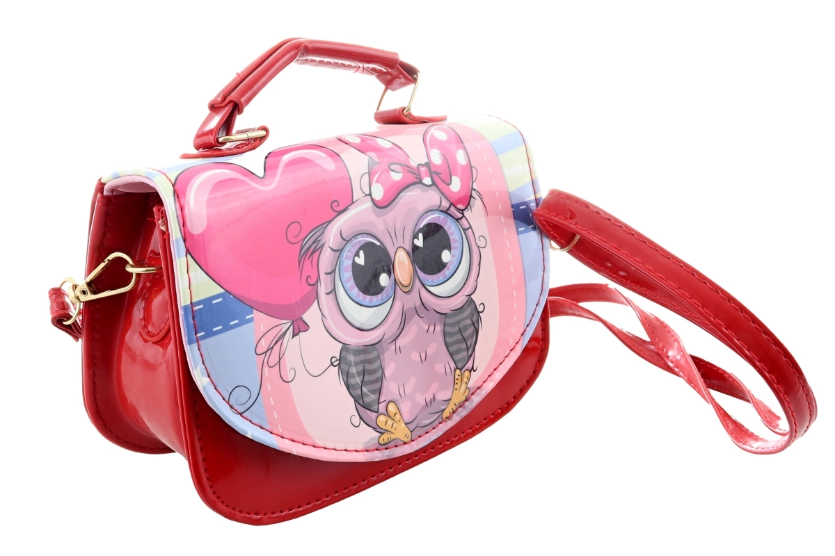 Ez az elegáns, kis méretű, piros táska bájos bagoly motívummal, masnival és szívecskékkel díszítve igazán figyelemfelkeltő. A fényes felület és az aranyszínű részletek stílusos megjelenést adnak, amely illik sétákhoz, látogatásokhoz és gyerekzsúrokhoz. Kompakt méretének köszönhetően kényelmesen hordható, és elfér benne minden apróság, amit a gyerekek magukkal szeretnének vinni.