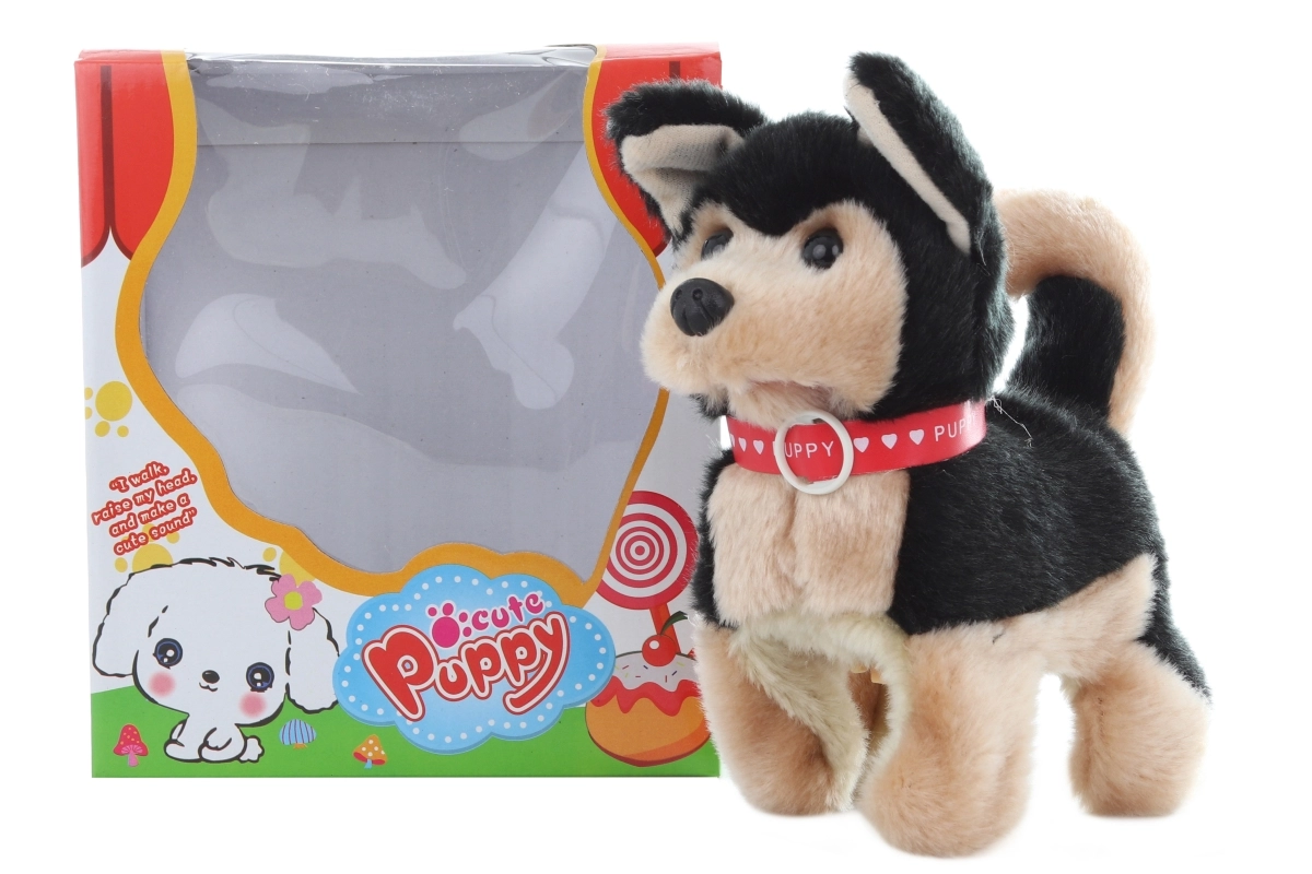 Ez a plüss, sétáló kutyus remek társ a kisállatokat kedvelő gyerekeknek. Bekapcsolás után sétál és ugató hangokat ad ki, ezzel egy valódi kutyust utánoz, és fejleszti a gyerekek fantáziáját, valamint ösztönzi az interaktív játékot.