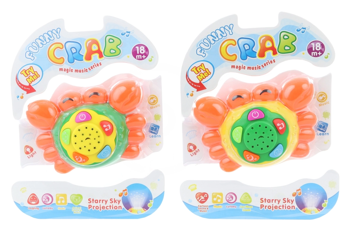 A cuki műanyag rák fényekkel és vidám hangokkal szórakoztatja a kicsiket. Elég megnyomni a gombokat, és a játék világít és zenél. Ideális az első felfedezéshez és az érzékek fejlesztéséhez. Világít és hangokat ad, könnyű kezelni, 18 hónapos kortól biztonságos, elemek a csomagban.