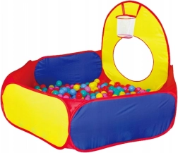 Szórakoztató játékszett gyerekeknek színes sátorral, alagúttal és száraz labdamedencével otthoni vagy kerti használatra. A csomag része 100 színes labda, egy dobókosár és célfalak 3 darab tépőzáras labdával. A önfelálló konstrukció, a gyors összeszerelés és a könnyű poliészter huzat egyszerű használatot és hosszú órákon át tartó aktív szórakozást garantál.