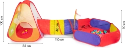 - Sátor, alagút, száraz medence, 100 műanyag labda, 3 tépőzáras labda