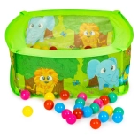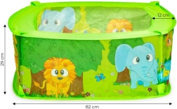 Aljzattal ellátott karám 50 golyóval – nem vízhez, mérete kb. 75 cm × 75 cm × 30 cm. A csomag tartalma: 50 golyó. A medencét használhatja otthon a gyerekszobában, valamint nyáron a kertben is. A gyerekek rengeteg szórakozást élveznek játék közben. Ajánlott életkor: 6 hónapos kortól.