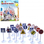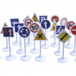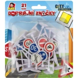 Szórakoztató készlet kis közlekedési táblákból 3 éves kortól. A csomag 21 műanyag táblát tartalmaz a City Collection kollekcióból, nem igényel elemet, és remek a képzelet és készségek fejlesztéséhez. A kompakt méret 18 × 16 × 3 cm megkönnyíti a hordozást és a tárolást.