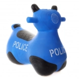Az ugráló segíti a gyerekeket a stabilitás, a mozgáskoordináció és az alsó végtagok erejének fejlesztésében. A rendőrségi megjelenés támogatja a fantáziát és a szerepjátékot. A csomagban található praktikus pumpa gyors üzembe helyezést tesz lehetővé.