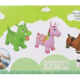 A mókás, gumiból készült, unikornis alakú ugráló minden gyermeket megörvendeztet. Stabil ülést, könnyű ugrálást kínál, és támogatja a mozgást és az egyensúlyt. Tartozék a pumpa, maximális teherbírása 50 kg, valamint kényelmes, 27 cm-es ülésmagasság.