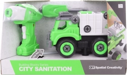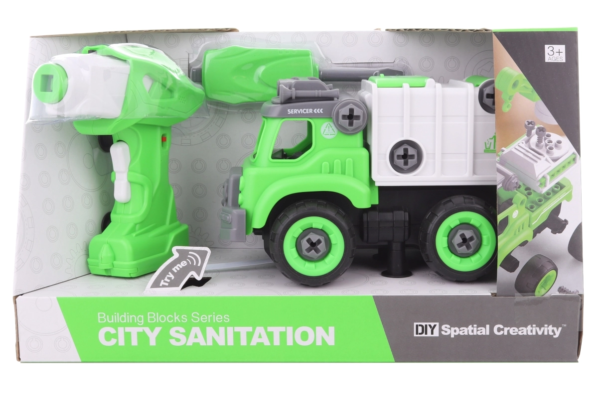 Szórakoztató és fejlesztő csavarozható, távirányítós szemetesautó 3 éves kortól. A gyerekek a mellékelt csavarhúzóval vagy fúróval könnyedén összeszerelik a járművet. A motort az autóba helyezve előre és hátra irányítható, az autó ráadásul valósághű hangokat ad ki. Interaktív játék, finommotorika fejlesztése és egyszerű irányítás egyben.