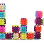 A vidám színek és a könnyen illeszthető kockák tornyok, házikók és fantáziaalkotások építésére ösztönzik a gyerekeket.