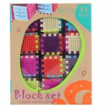 Ez a kockakészlet végtelen alkotási lehetőséget kínál a gyerekeknek – az egyszerű tornyoktól a saját, egyedi építményekig. Az elemek elég nagyok a biztonságos manipulációhoz a kis kezek számára, a vidám színek pedig motiválják a felfedezést, válogatást és építést.