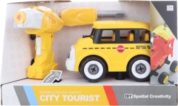 Fedezze fel az okos játékot, amely ötvözi az építőkészletet és a távirányítást. A gyerekek először összecsavarozzák a buszt a mellékelt csavarhúzóval vagy a fúróval. A fúróból kivehető motor a buszba helyezhető, és már indulhat is – a vezérlés előre és hátra is gyerekjáték.