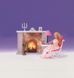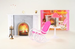 A csomag tartalmaz egy kényelmes hintaszéket a babák számára, egy asztalkát dekoratív (nem működő) lámpával, valamint egy állványt a kandallóeszközökkel. A hangulatot gyertyatartó, kép és óra dekorációk teszik teljessé. Műanyag kivitelének köszönhetően a készlet könnyű, könnyen tisztán tartható és biztonságos a gyermekek számára.