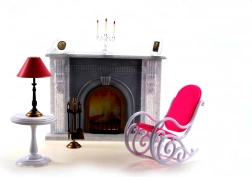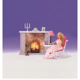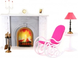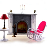 Stílusos készlet babaházba, amely meghitt nappali hangulatot teremt. Tartalmaz kandallót dekorációkkal, hintaszéket, aszkalt lámpával és állványt kandallóeszközökkel. Ideális kreatív játékhoz és a babaház belső terének kiegészítéséhez. A baba nem része a csomagnak. Ajánlott 3 éves kortól.
