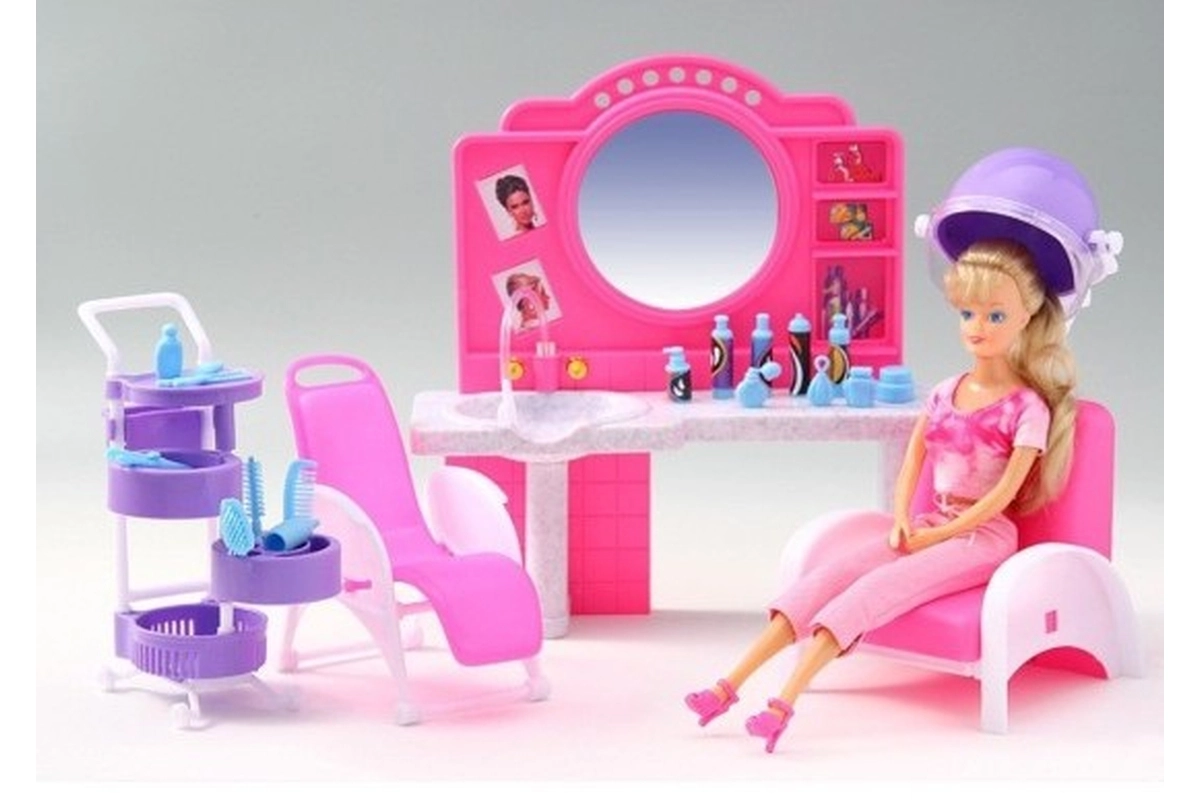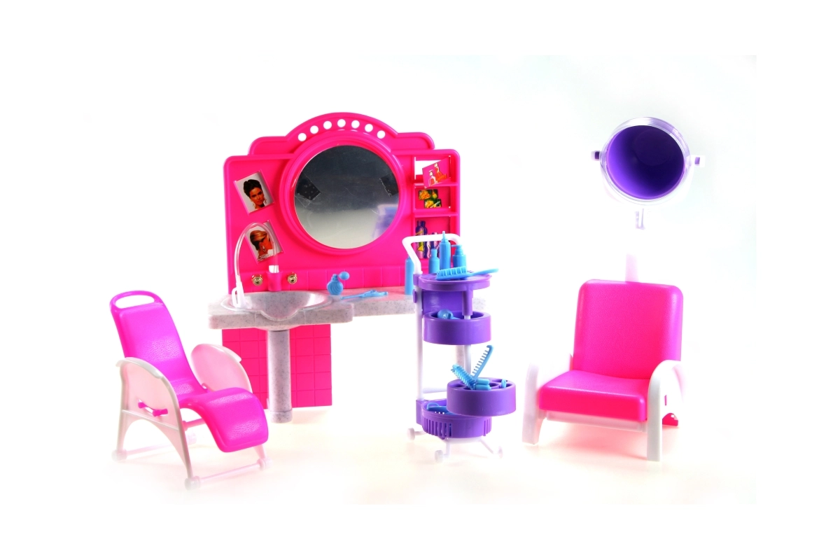 Alakítsatok ki saját kis fodrászszalont otthon a Glorie fodrászszalon játékszettel. A gyerekek kipróbálhatják a fodrász szerepét, kedvenc babáik haját formázhatják, és fejleszthetik fantáziájukat és finommotorikájukat. A valósághű elemek, mint a tükörrel és mosdóval ellátott fésülködőasztal, a fodrászszékek és a hajszárító búra (dekoratív, nem működő) autentikus hangulatot adnak a játéknak.