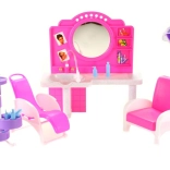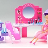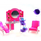 A stílusos Glorie fodrászszalon játékszett rengeteg szórakozást nyújt a gyerekeknek a fodrászos szerepjátékhoz. Tartalmaz fésülködőasztalt tükörrel és mosdóval, kényelmes fodrászszékeket, rekeszes kocsit, valamint számos hajformázó kiegészítőt, például fésűket, keféket és kis flakonokat. Tartós műanyagból készül. A baba nem része a csomagnak. 3 éves kortól ajánlott.