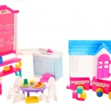 Bővítse a játék világát a teljes Glorie óvoda szettel, amely nagy táblát polcokkal, mosdókagylót, házikót nyitható ajtókkal, gyermek székeket és asztalkát, főzőlapot, kisvonatot három kocsival és rengeteg kiegészítőt és edényt kínál. Ideális a fantázia, a szociális készségek és a finommotorika fejlesztéséhez. A babák nem részei a csomagnak.