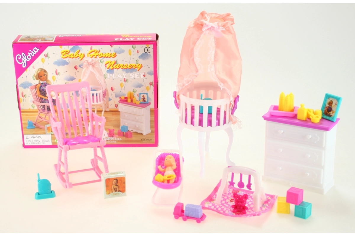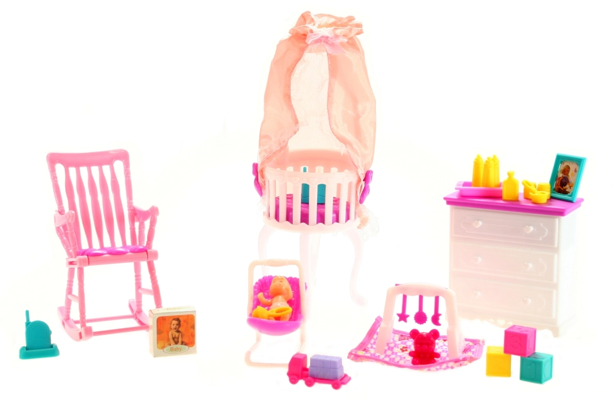 - Teljes felszereltség: komód, baldachinos kiságy, pihenőszék, hintaszék, játékok és babakellékek.