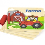 Ez a farm témájú fa lapozó remek eszköz a gyerekek első ismerkedéséhez az állatok világával. A tartós fa lapok élénk illusztrációkkal és magyar feliratokkal fejlesztik a finommotorikát, a szókincset és a koncentrációt.