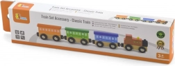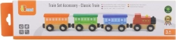 A fa Klasszikus vonat készlet 4 részből áll, amelyeket mágnesek kötnek össze. Ezt a játékot a fa játékok neves gyártója, a Viga Toys tervezte. A készlet önálló játékként használható, vagy más vasúti pályákhoz, konstrukciókhoz és készletekhez kiegészítőként.
