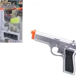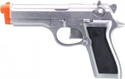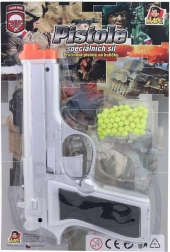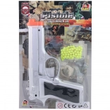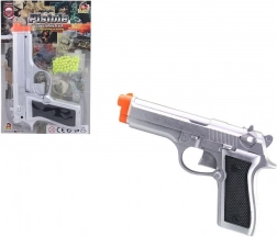 Szórakoztató, 21 cm hosszú műanyag golyós pisztoly 3 éves kortól kis lövészeknek. Egyszerű rugós mechanizmus, könnyű kivitel, a csomag része egy golyócsomag az azonnali játékhoz. Ideális otthoni és kültéri szórakozáshoz, biztonságos játék gyerekeknek intuitív kezeléssel.