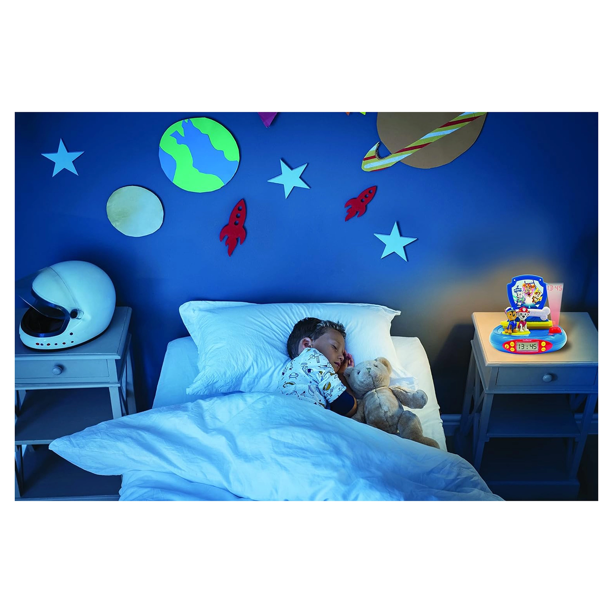 Ez az ébresztőóra az időt a plafonra vetíti és Mancs Őrjárat kedvelt hőseinek dekorációjával van ellátva, ami izgalmasabbá teszi az éjszakát.