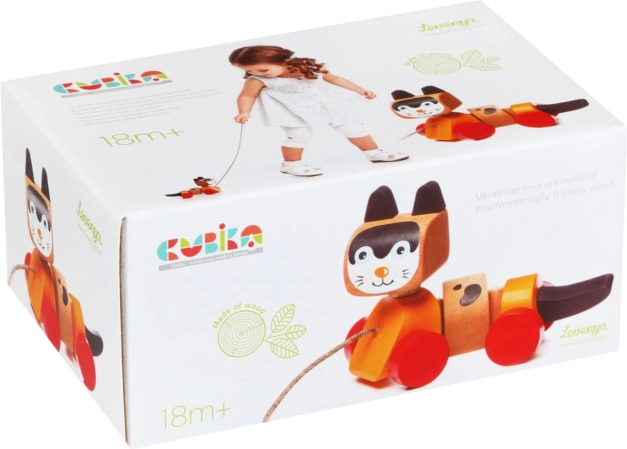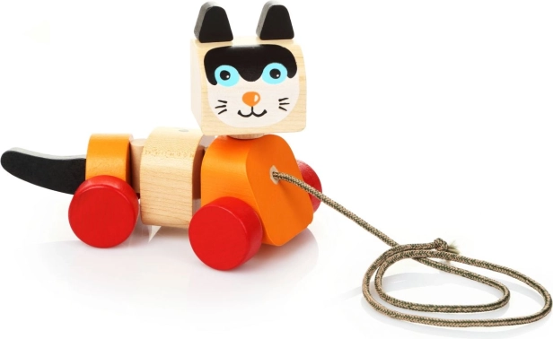 Fa húzható játék, vidám cica alakban tervezett, ideális a gyerekek szórakozásához és motorikus készségeik fejlesztéséhez. A játék mozgatható testtel és kerekekkel rendelkezik, ami lehetővé teszi a zökkenőmentes és szórakoztató mozgásokat a húzózsinórral való játék közben. Színes designja felkelti a gyerekek figyelmét és ösztönzi őket az aktív játékra.