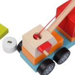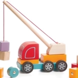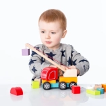 A Cubika márkájú gyerek fa darus autó környezetbarát játék, amely fejleszti a gyermekek készségeit és kreativitását. Az autódaru 14 színes darabból áll, amelyből 10 különálló kockát lehet a daru mágnesével emelni és áthelyezni.