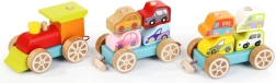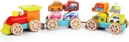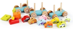 Ez a színes fa puzzle 14 elemet tartalmaz, amellyel a gyerekek egy vonatszerelvényt két vagonnal és nyolc kisautóval összeállíthatnak. Nem csupán az egyes elemekkel játszanak, hanem fejlesztik szenzomotoros képességeiket, logikai gondolkodásukat és kreativitásukat is.