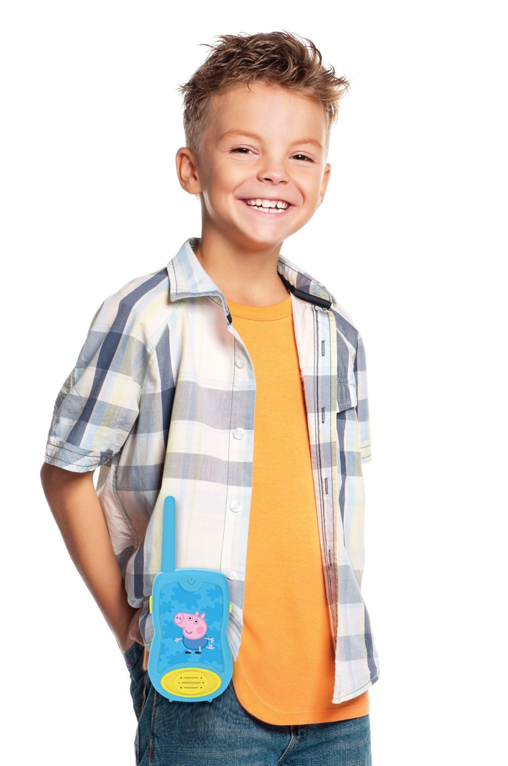 Maradjatok kapcsolatban minden kaland során a Peppa malac mintás gyerek walkie-talkie-kkal. Akár 120 méteres hatótávot kínálnak (terep- és időjárásfüggő), egyszerű kezelést a „TALK” gombbal, ergonomikus kialakítást a kis kezekhez és tiszta digitális hangot. A rugalmas antenna és a levehető övcsipesz miatt ideális kémes játékokhoz és szabadtéri kirándulásokhoz.