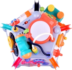 Fedezze fel a szórakozást és a tanulást egyben a HOLA interaktív multikockájával. 5 interaktív oldallal és felső panellel, fény- és hangeffektekkel, gyöngylabirintusokkal, mikrofonnal, kormánnyal dudával, valamint melódiákkal rendelkezik. Támogatja a finommotorikát, a szenzoros észlelést és a kéz–szem koordinációt – ideális a hosszú órákon át tartó okos szórakozáshoz.