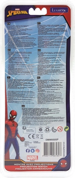 A oldalsó gomb egyszeri megnyomásával aktiválhatja a vetítőt és élvezheti akár 20 különböző Spider-Man képet. A képet az óra oldalán található kerékkel lehet fókuszálni. Ez a lehetőség lehetőséget ad a gyerekeknek, hogy a vetített szimbólumokkal kommunikáljanak barátaikkal. Nemcsak az időt tanulják meg, hanem kommunikációs képességeiket is gazdagítják.