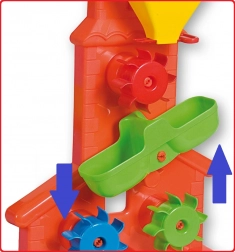 Figyeld, ahogy a színes kerekek forogni kezdenek, és ahogy a vályú elosztja az áramlást. A játék fejleszti az érzékelést és a logikus gondolkodást.
