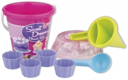 Ez a közepes méretű Androni homokozó szett mindent biztosít a kreatív játékhoz a homokozóban és a vízparton. A dekoráló tölcsér lehetővé teszi a homok és víz kombinálását, így a gyerekek egyedi „muffinokat” és más alkotásokat készíthetnek, míg a bábovka alakú formák és a tortaformájú átlátszó szita fejlesztik a fantáziát és a finommotorikát.