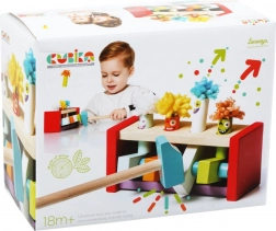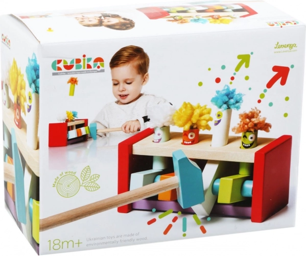Fa kalapálós pad felugró bohócokkal a CUBIKA márkától, amely a játékot szórakoztató tanulássá változtatja. A gyerekek a kalapáccsal a színes elemekre ütnek, és figyelik, ahogy a bohócok felpattannak – ez kiválóan fejleszti a finommotorikát, a kéz–szem koordinációt és a logikus gondolkodást. Juhar- és bükkfából készült, vízbázisú, biztonságos festékekkel és európai gyártással.