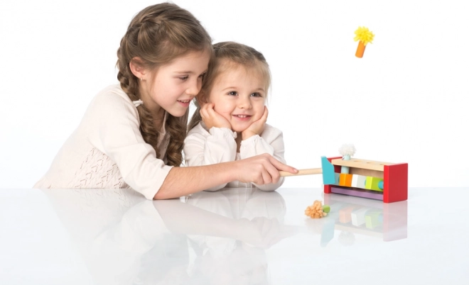 Ez a minőségi fa játék örömet szerez a gyerekeknek az ok-okozat felfedezésében. Minden kalapácsütés mozgásba hozza a mechanizmust, és a vidám bohóc felugrik – egyszerű, mégis lenyűgöző élmény, amely ismétlésre és fejlődésre ösztönöz.