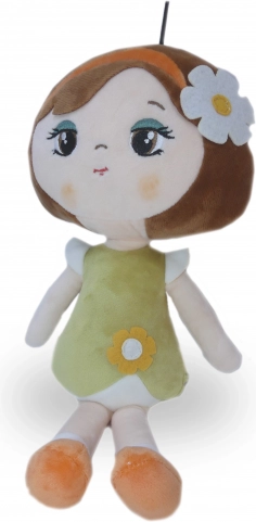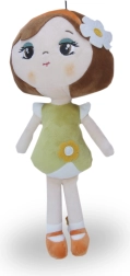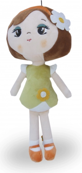 A Roma plüssbaba finom megjelenésével bűvöl el – barna haj virágdísszel, olívazöld ruha kis virággal és narancssárga cipők. A finom, sima és fényes plüss kellemes tapintású és egyenesen ölelgetésre csábít. Könnyű kialakításának köszönhetően a gyerekek bárhová magukkal vihetik – a kiságyba, útra vagy látogatásra.