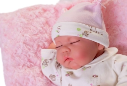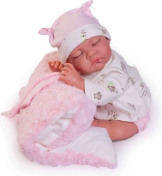 Luna baba úgy néz ki, mint egy valódi alvó újszülött, részletes arcvonásokkal és valóságos puha vinil testtel, amely kellemes tapintású.