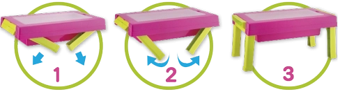 A könnyen szétnyitható asztalka játék közben stabil felületként szolgál, a játék végeztével pedig praktikus dobozzá alakul, amelyben elfér az összes tartozék.