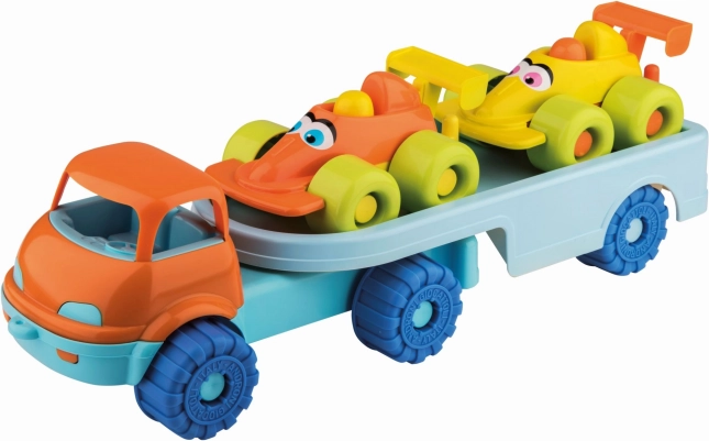 Vidám kisautók a pótkocsin nagyszerű választást jelentenek azoknak a kisgyermekeknek, akik szeretik a színes és szórakoztató közlekedési eszközöket. Ez a 3 részes készlet kiváló minőségű műanyagokból készült Olaszországban, ami garantálja a magas minőséget és biztonságot.