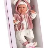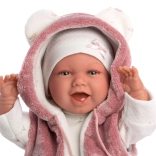 Bájos realista baba puha szövettesttel, amely beszél és nevet, minden gyermeket örömmel tölt el. Ideális játékhoz és gyűjtéshez.